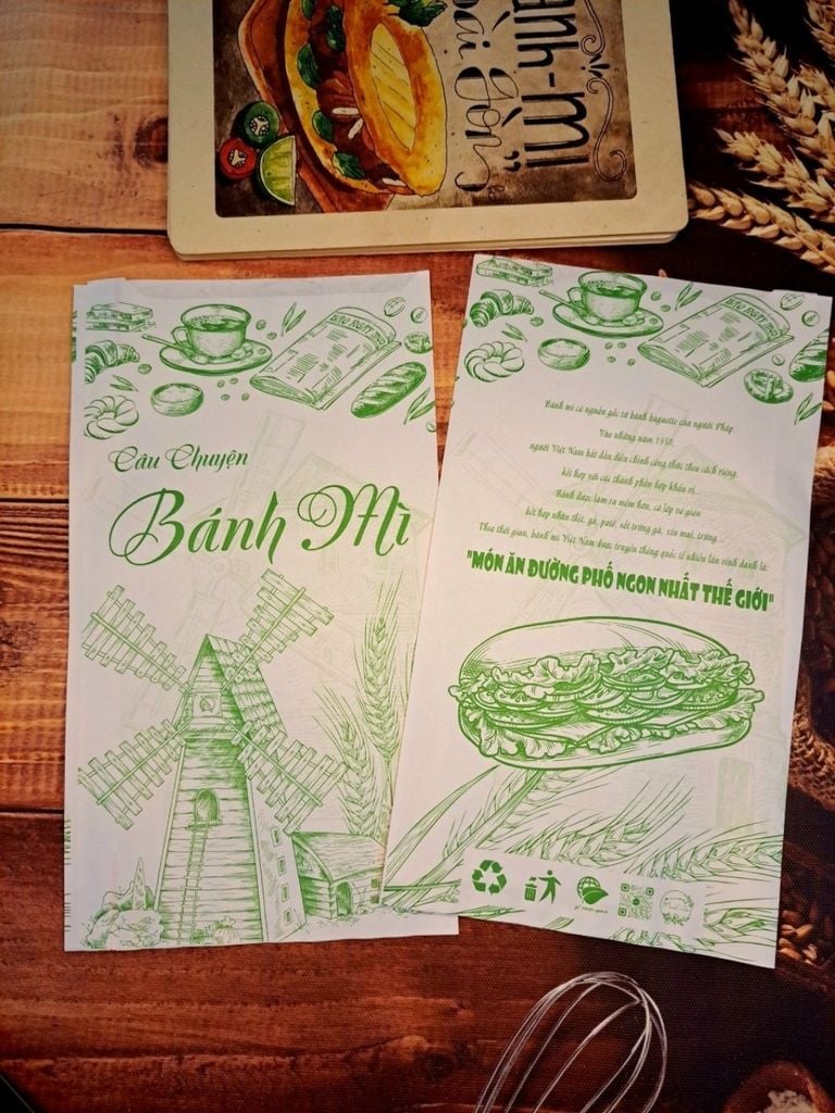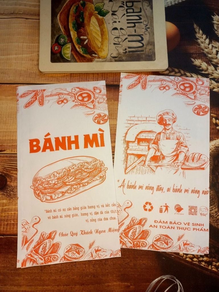 Bao bì bánh mì bằng giấy trắng in họa tiết tinh tế, tạo cảm giác sang trọng