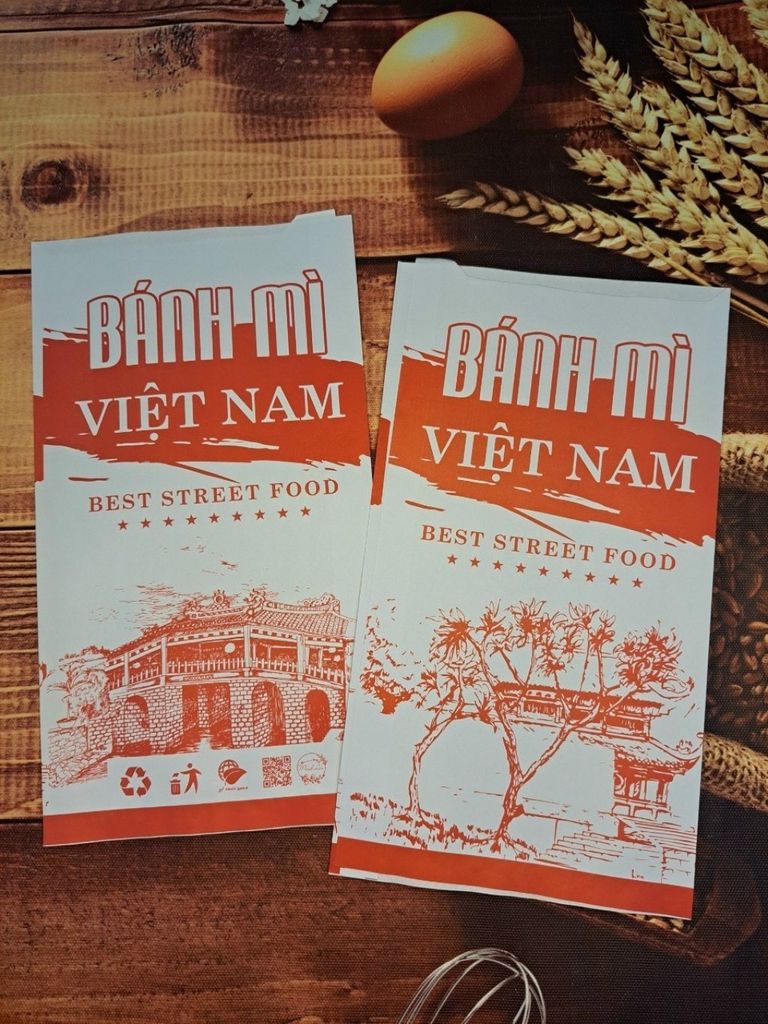 In túi giấy đựng bánh mì màu trắng hình địa danh nổi tiếng tại Việt Nam