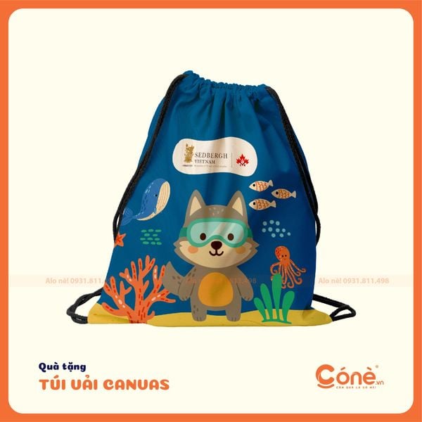 Quà tặng túi vải dây rút tiện lợi, công nghệ in chuyển nhiệt tạo logo rực rỡ, sắc nét