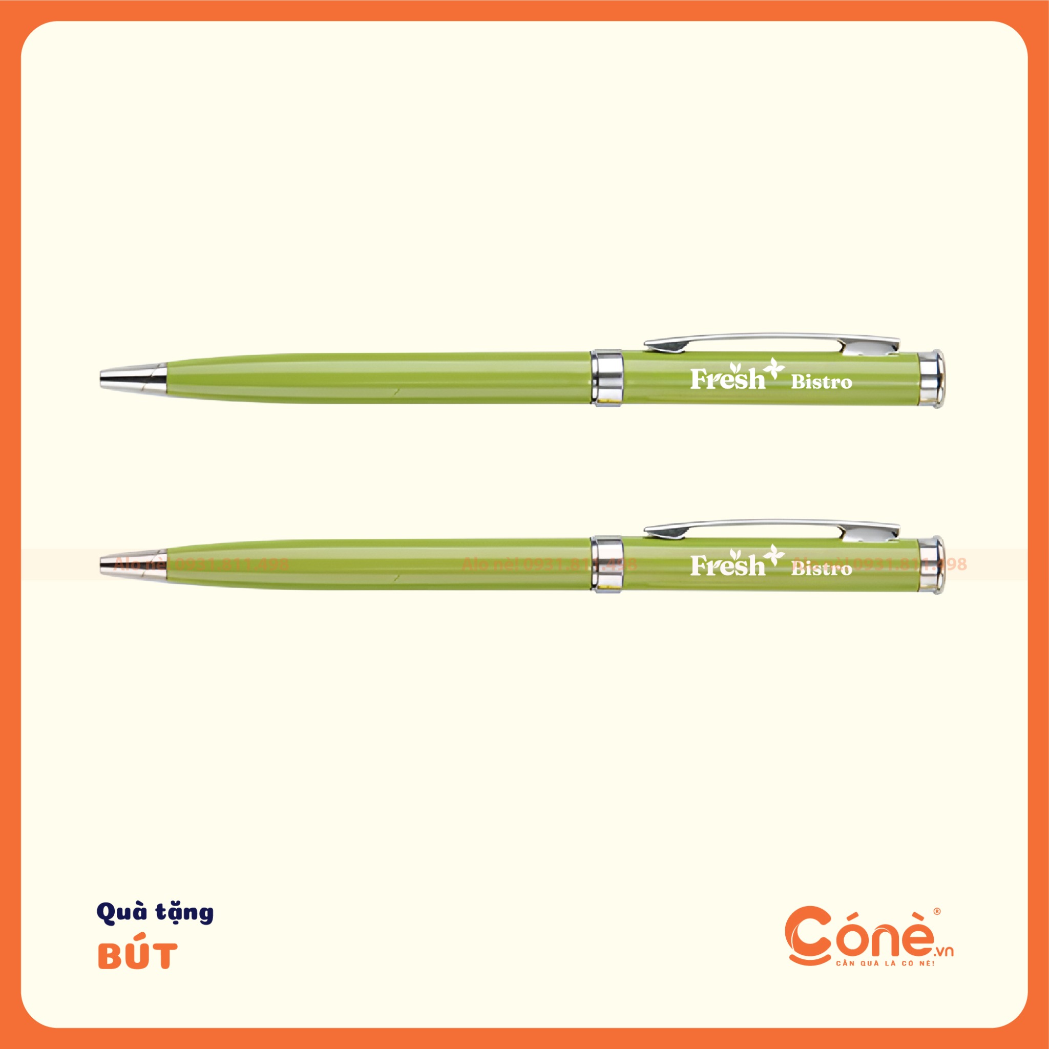 Truyền tải thông điệp về sự tươi mới và sức sống với bút BKL006 màu xanh lá, lựa chọn lý tưởng cho các thương hiệu F&B và wellness.