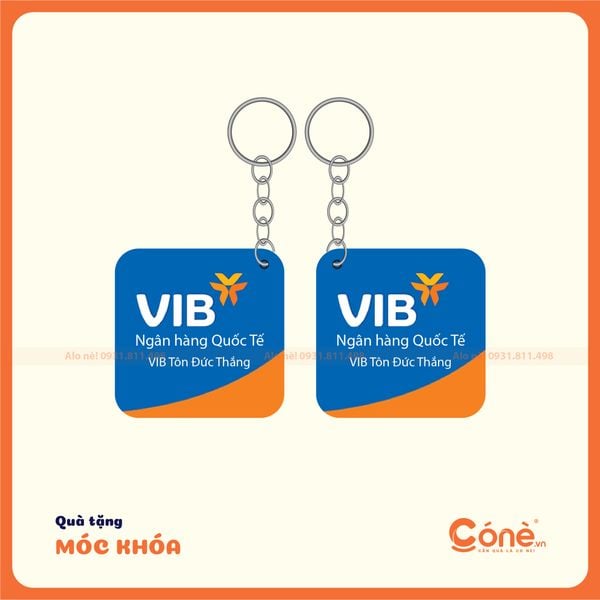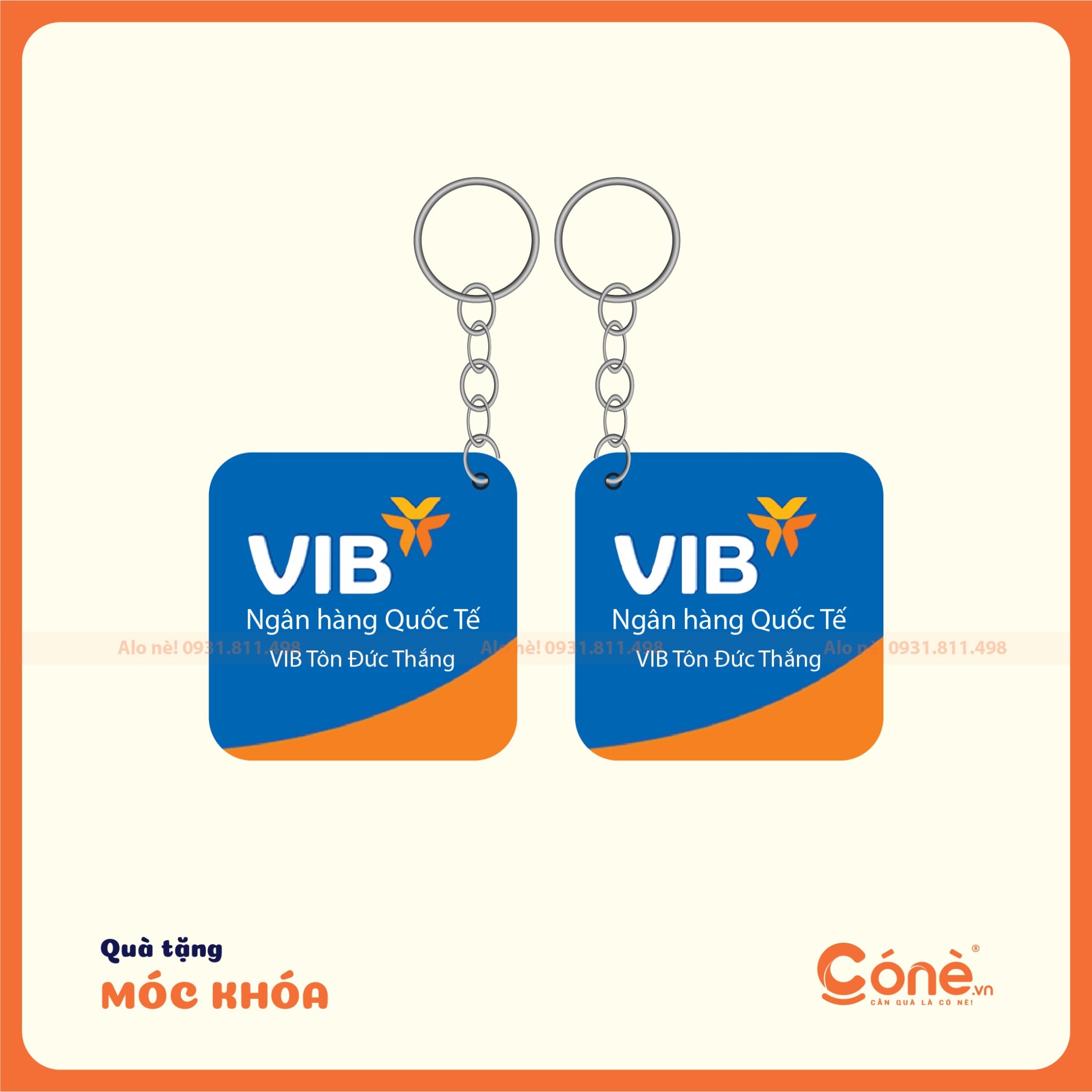 Có Nè thiết kế móc khoá cho Ngân hàng VIB, hình dạng vuông, chất liệu mica.